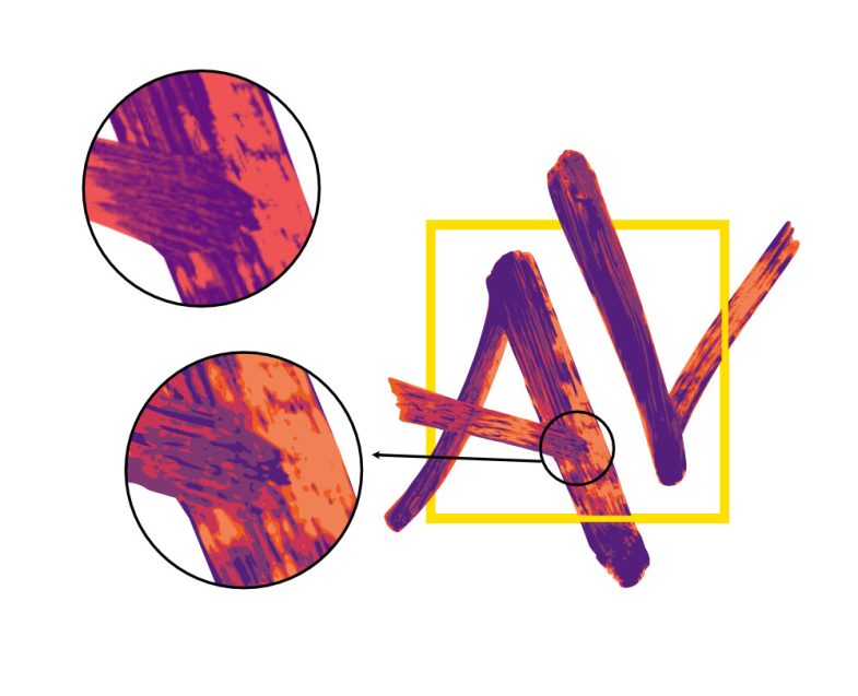 De letters zijn met een kwast geschilderd en vervolgens omgezet naar vector. Dat betekent dat het geen pixels meer zijn en ook groot kan worden afgedrukt zonder verlies aan kwaliteit.